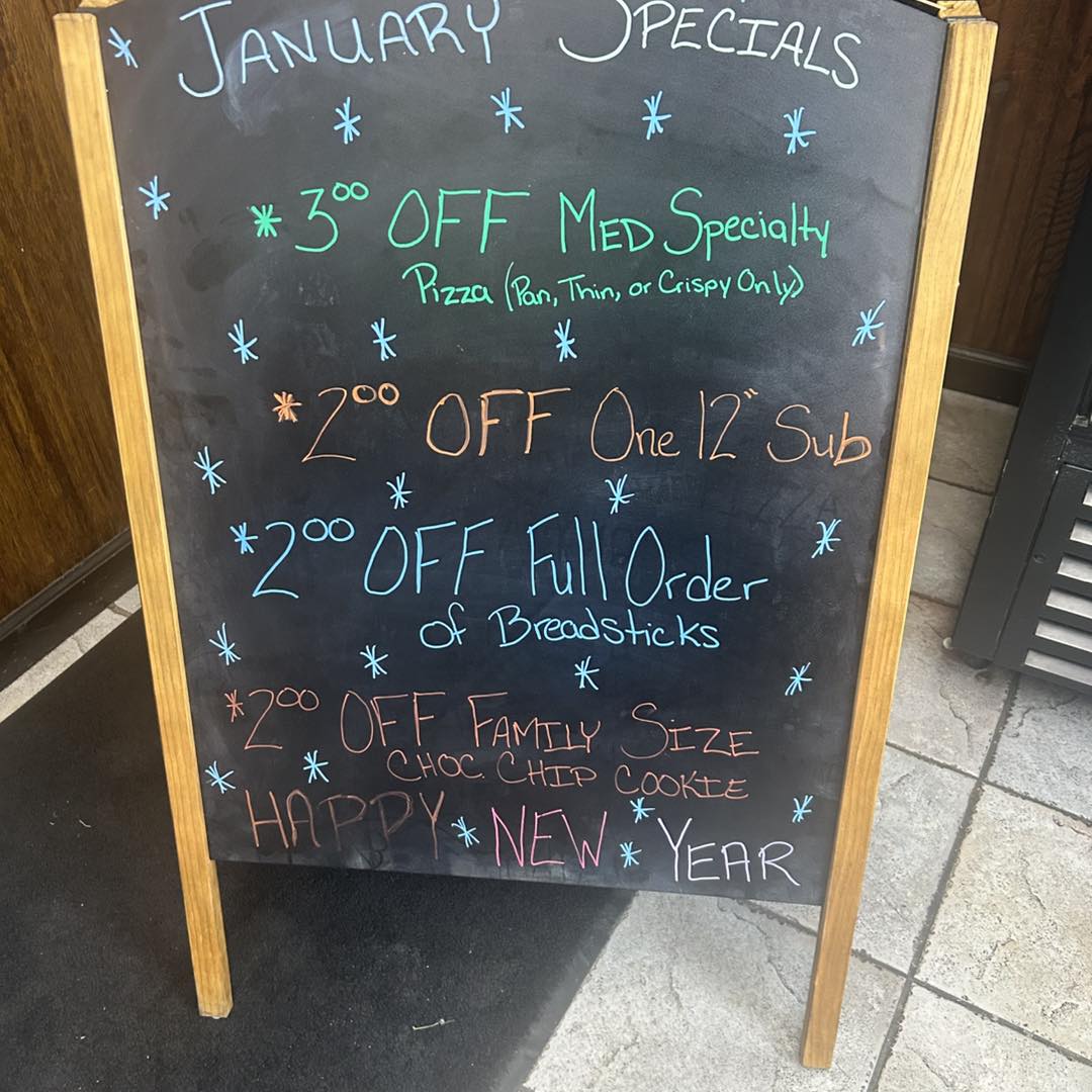 "We were passing through and stopped for a bite. Great pizza and service was excellent."